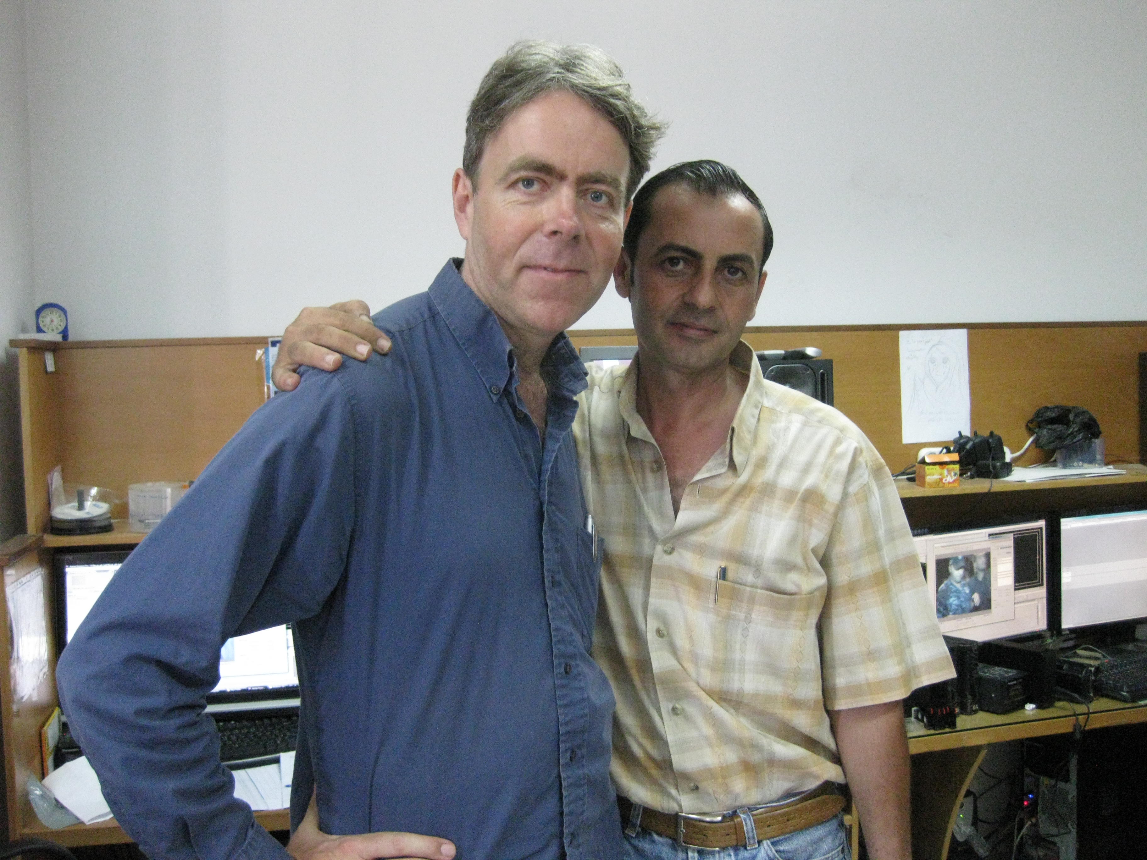 And here are my personal reflections on filming in Gaza, in particular the extraordinary story of Gazan cameraman Khalid – that’s me on the left, Khalid on the right.