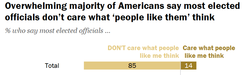 Yes, the environment is often not good – there is far too much emphasis on having to raise money in the American system, for example – but that doesn’t mean that politicians, as a whole, are bad people who deserve our contempt.